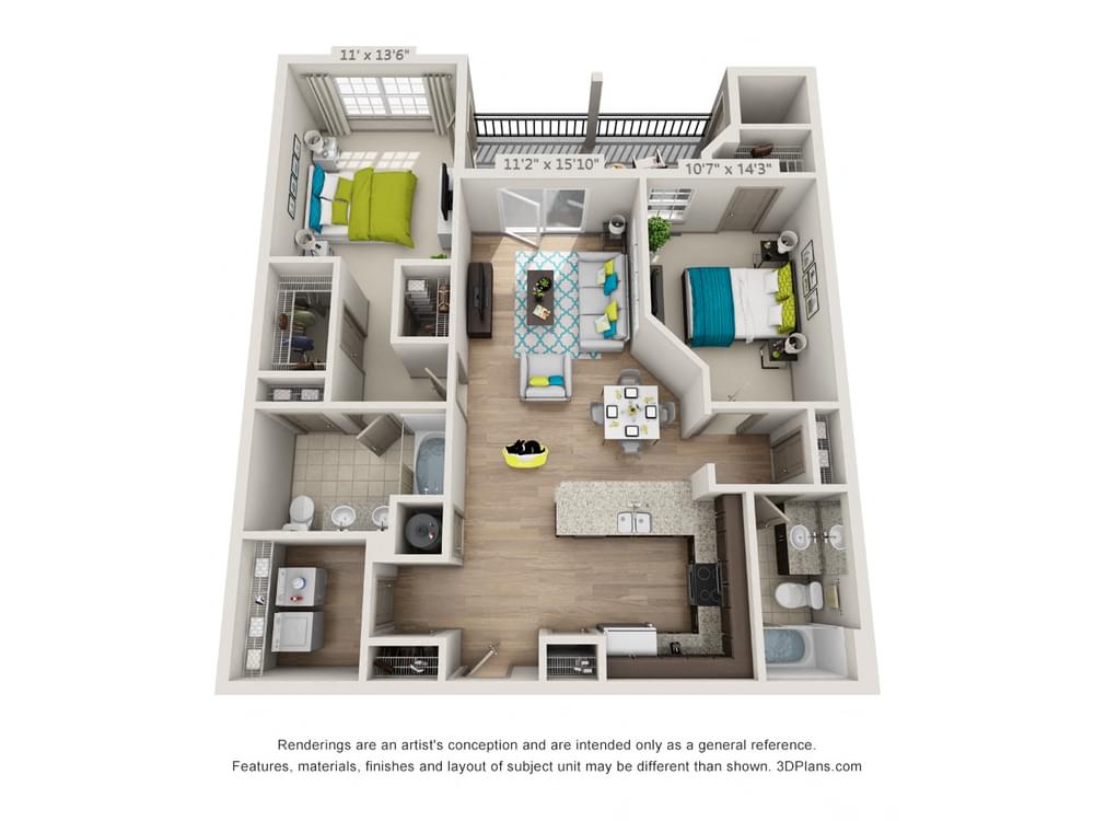 Unit Type2 Bed / 2 BathFloor Area1,195 sq. ft.Available01/03/2026Starting at$1,820 / mo